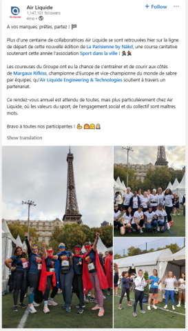 A female-only charity run to support the NGO "Sport dans la ville" organised in partnership with Air Liquide