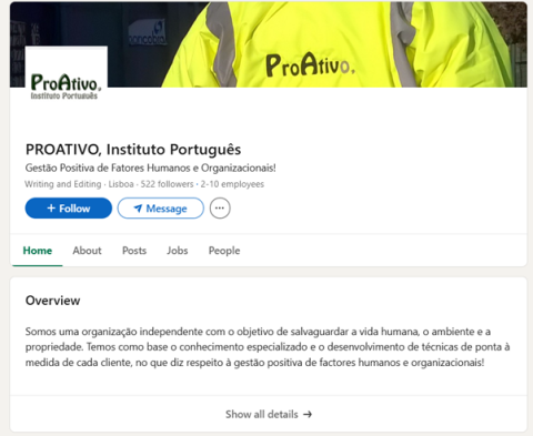 The LinkedIn profile of the Portuguese magazine, PROATIVO, Instituto Português, features information on occupational safety and health in Portugal and Europe.