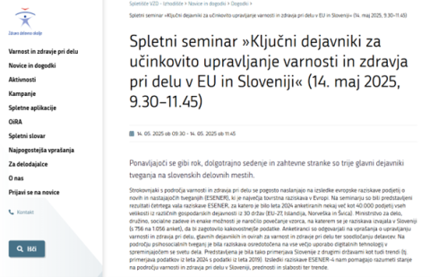 Webinar "Key factors for effective OSH management in the EU and Slovenia"