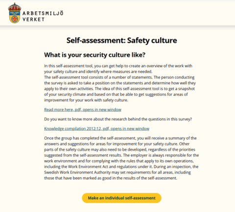 A self-assessment tool aimed at employers and employees who can evaluate their safety culture and identify where measures need to be taken to improve it.